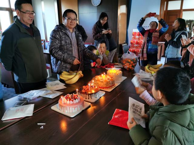 2019年12月31日下午,琉璃神社 工会在化学楼二楼会议室为全院老师举行了生日庆祝活动。院工会也借此机会向全体教师送上新年的祝福。