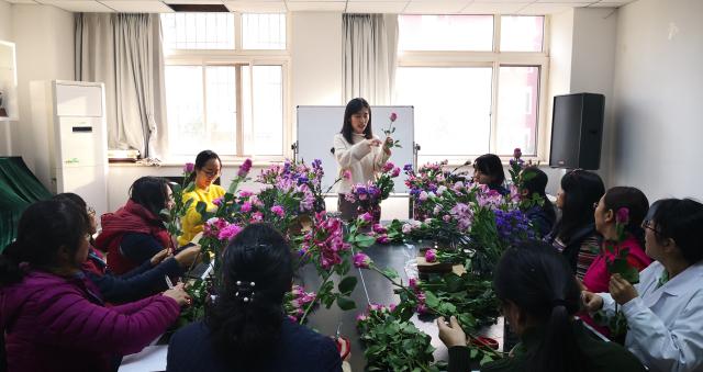为了丰富琉璃神社 女老师的精神文化生活、陶冶情操、提高艺术修养,2018年11月28日下午,琉璃神社 工会组织学院女老师20余人参加了“冬之花”插花艺术讲座。此次活动专程聘请了花艺师带领大家走进插花艺术的海洋,去领略不一样的插花艺术,感受从自己手中绽放的绚烂,使女老师们在学习插花创造过程中提升了自己的审美品味。