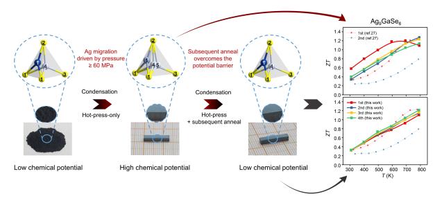 压力诱导Ag迁移导致Ag9GaSe6热电性能不稳定的内在机制及其消除