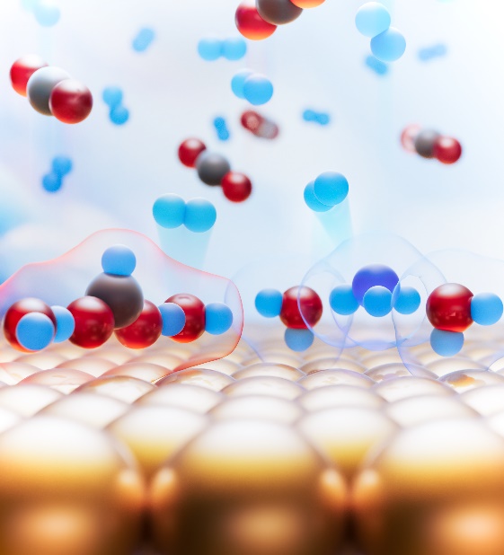 图1 铜表面水分子促催化甲酸分解制氢的艺术效果图。