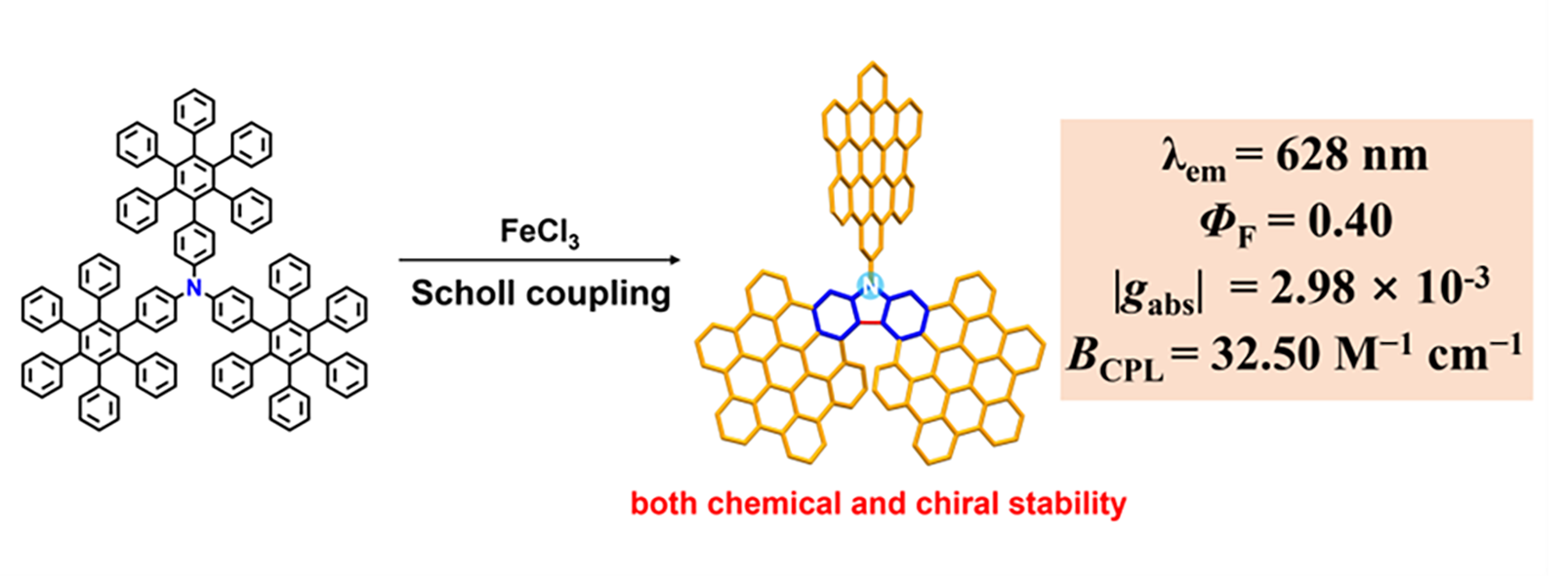 咔唑为含氮芳香化合物,凭借其多功能的电子特性和优异的化学稳定性,已成为光电材料设计中的关键结构单元。然而,将咔唑引入螺烯分子以构建含氮杂原子的超级螺烯结构,因需同时保持分子的结构稳定性和光电特性而面临重大挑战。尽管通过多环芳香体系的构建可以在一定程度上提高氮杂螺烯的稳定性,但合成路线复杂、产率低等问题仍然限制了这一方向的发展。
