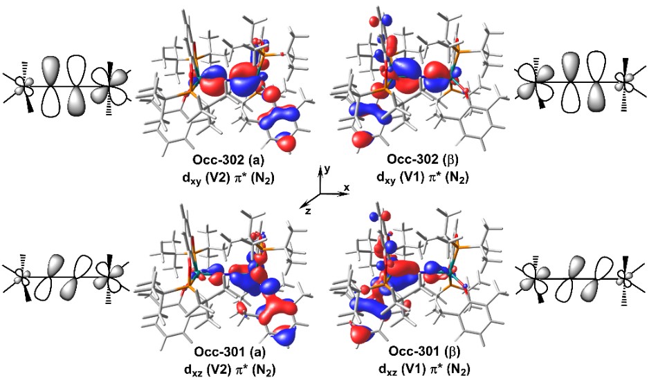 图2. 钒的双氮配合物分子轨道分析