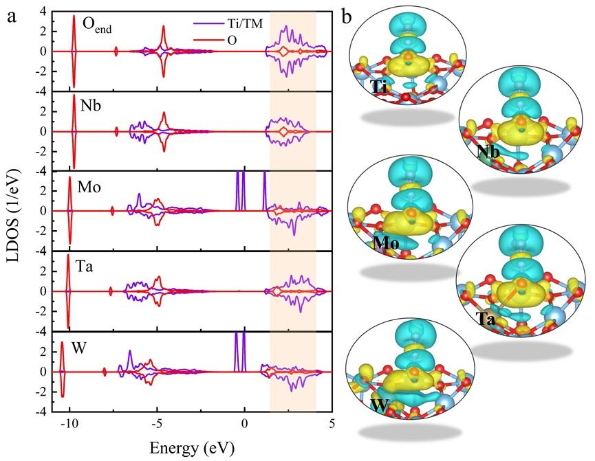 基于以上的计算结果,我们提出通过高价金属掺杂,增强p-d杂化,促使更多的电子转移至N2O,实现低温下N2O高效热解离(图5)所示。晶体轨道布局分析也表明,金属掺杂弱化N-O化学键,使得N-O的强度小于 = 2 fs时的强度。为了证实金属掺杂的结果,以W掺杂作为特例进行了分子动力学模拟,结果表明经过~2.2 ps的热活化,N2O中N-O键自发断裂,分子解离。以上的探究表明即使在没有光照的协助下,高价过渡金属也可以促进N2O解离,为实验提供了调控电子转移和化学反应的新策略。