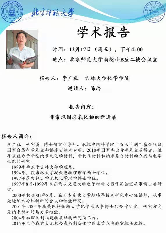 学术报告:吉林大学,李广社教授,非常规固态氧化物的新进展