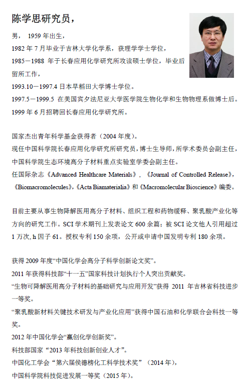 学术报告-中国科学院长春应用化学研究所,陈学思研究员:生物可降解高分子材料的合成及其应用