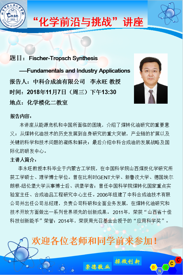 学术报告:中科合成油有限公司,李永旺教授,Fischer-Tropsch Synthesis----Fundamentals and Industry Applications