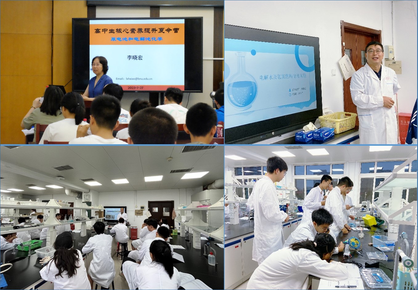 7月27日的课程主要围绕电化学主题展开。上午,李晓宏老师为同学们讲授了“原电池和电解池化学”理论课程,先从化学热力学角度开始,揭示电池反应的本质,并由浅入深介绍了原电池及电解池的组成、原理及应用,并结合例题不断巩固核心知识。下午和晚上,李运超老师和孙根班老师分别带领同学们开展了两个电化学相关的实验“电极与原电池可逆性探究”和“电解水及氢氧燃料电池”,实验前,老师们用生动的语言讲解实验原理和步骤,并进一步科普了各种电池在实际生活中的应用;实验中,同学们亲自实践,认真观察和记录实验现象,并敢于提出疑问,加深了对原电池和电解池化学的理解。