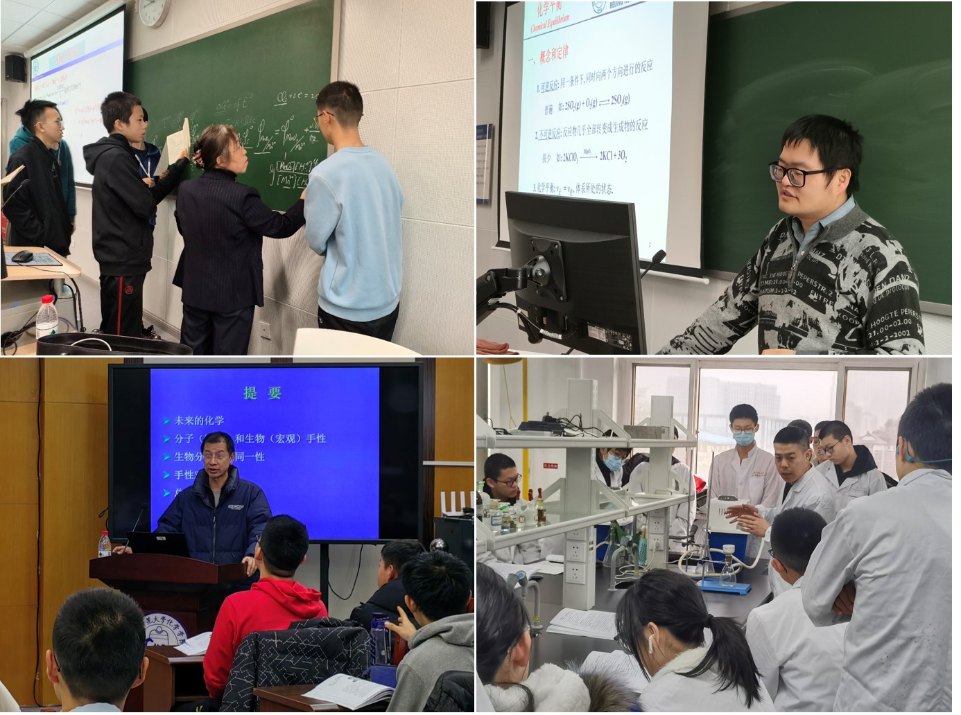 第二天的课程围绕围绕元素及其化合物主题展开。上午,赵云岺老师讲授了“元素单质及化合物”理论课程,讲解了能斯特方程的应用、非金属单质的结构与性质、p区元素性质的变化规律等内容,课程设置互动交流,引导学生不断反馈。下午,同学们在实验室进行了“硫酸亚铁铵的制备及性质实验”,在指导教师带领下,同学们学习了化合物制备和纯化的一般步骤,按照操作要求制得了目标产物。晚上,邵久书教授做了题为“无处不在的手性”前沿报告,报告解释了分子手性概念和基本问题,回顾了对手性认识由浅入深的过程,讨论了对宏观形态手性及生物手性同一性等科学难题的基本认识,介绍了有关分子手性对称破缺实验与理论的相关进展,课程生动有趣,学生们获益颇多。