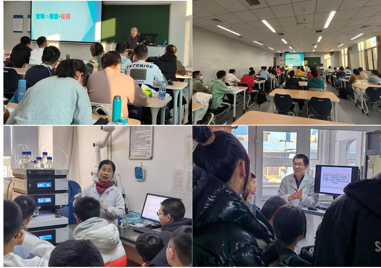 第一天的课程围绕结构化学主题展开。上午,陈光巨教授讲授了“体验探索发现物质结构-性能的魅力奥秘和关系”的理论课程,从“宏微-衡变-证模”、“结构-性质-育学教”、“发展-创新-未来”三个角度带领学生们进行学习,梳理高中化学 “原子结构”、“微粒间相互作用与物质性质”、“物质的聚集状态与物质性质”等内容,讲解五大化学学科核心素养之间的内在关系,培养学生们从微观层面研究物质的思维方式。下午,同学们学习了两种重要的结构表征的工具,单晶和核磁,邓学彬老师和乔晋萍老师从结构测定原理、仪器构造、测试方法等向同学们进行了讲解和实操演示。晚上,中国科学院方维海院士做了题为“量子计算化学”前沿报告,报告深入浅出地讲解了量子化学的基本知识和量子计算机的基本原理,报告旁征博引,并通过实例鼓励同学们高水平的科研工作不是遥不可及的,创新性成果的关键是坚实的理论和实验基础,引导同学们善于发现问题,坚持不懈努力。