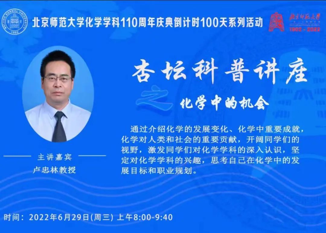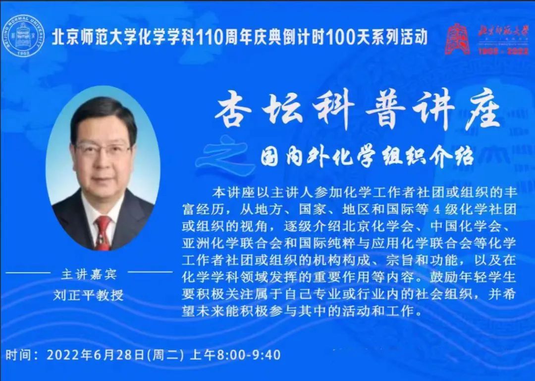 从2022年6月27日(周一)上午开始,将开展琉璃神社 化学学科110周年庆倒计时100天系列活动中部分讲座的直播分享,欢迎感兴趣的老师、同学关注,上线观看。特别适合化学化工医药相关专业大一大二学生学习,热烈欢迎!