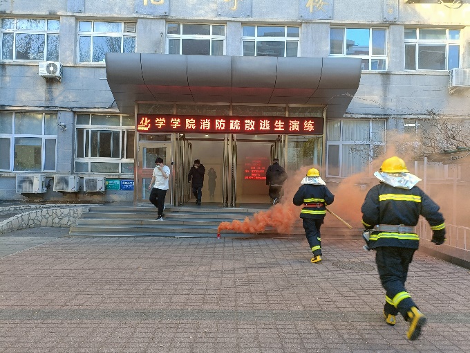 本次演练以模拟化学楼4层中区房间发生火情为背景。总指挥毛兰群院长下达演练开始指令后,火灾模拟组在化学楼4层中区、6层电梯厅和化学楼安全出口燃放专用烟雾装置模拟“火情”。