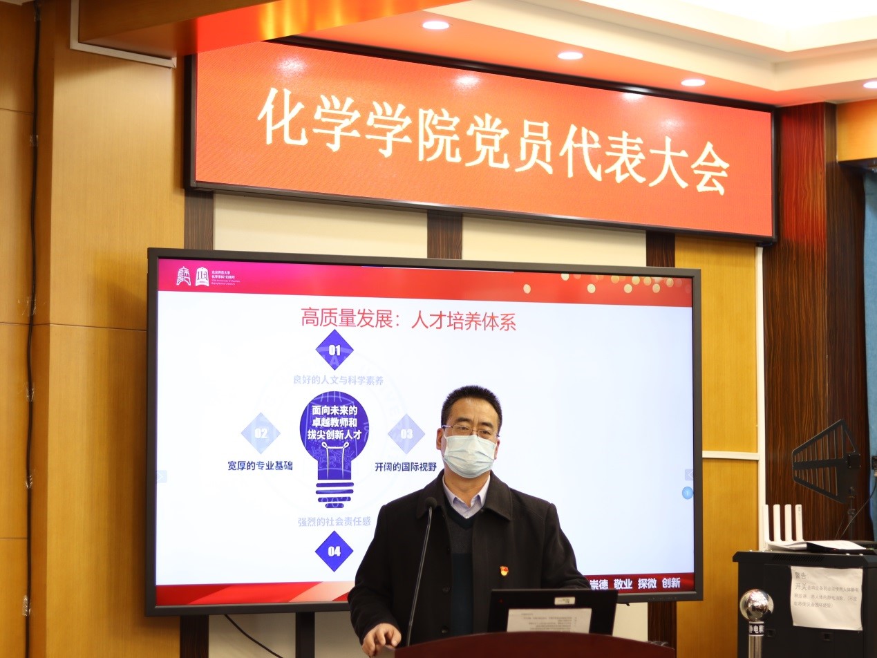 卢老师特别指出,深入学习贯彻党的二十大报告,要深刻理解和把握教育、科技、人才是全面建设社会主义现代化国家的基础性战略性支撑,要将学习体悟与教学科研和学院发展的本质工作相结合,把党的二十大精神落实到各项具体工作和实际行动中,落实立德树人根本任务。作为我国基础化学教育人才的摇篮,学院要继续将加强基础化学教育发展,不断培养卓越化学教师;以科学研究为重点,注重服务于国家、社会的重大需求,持续培养拔尖创新人才,为国家创新发展做贡献 ;同时加大化学科普工作,助力提升国民综合素质,积极服务强国建设。在学科发展上,坚持“一体两翼” 发展格局,积极响应优师回信,提供北师大优师化学方案;加大新医药、新能源、新材料产学研的高质量发展。