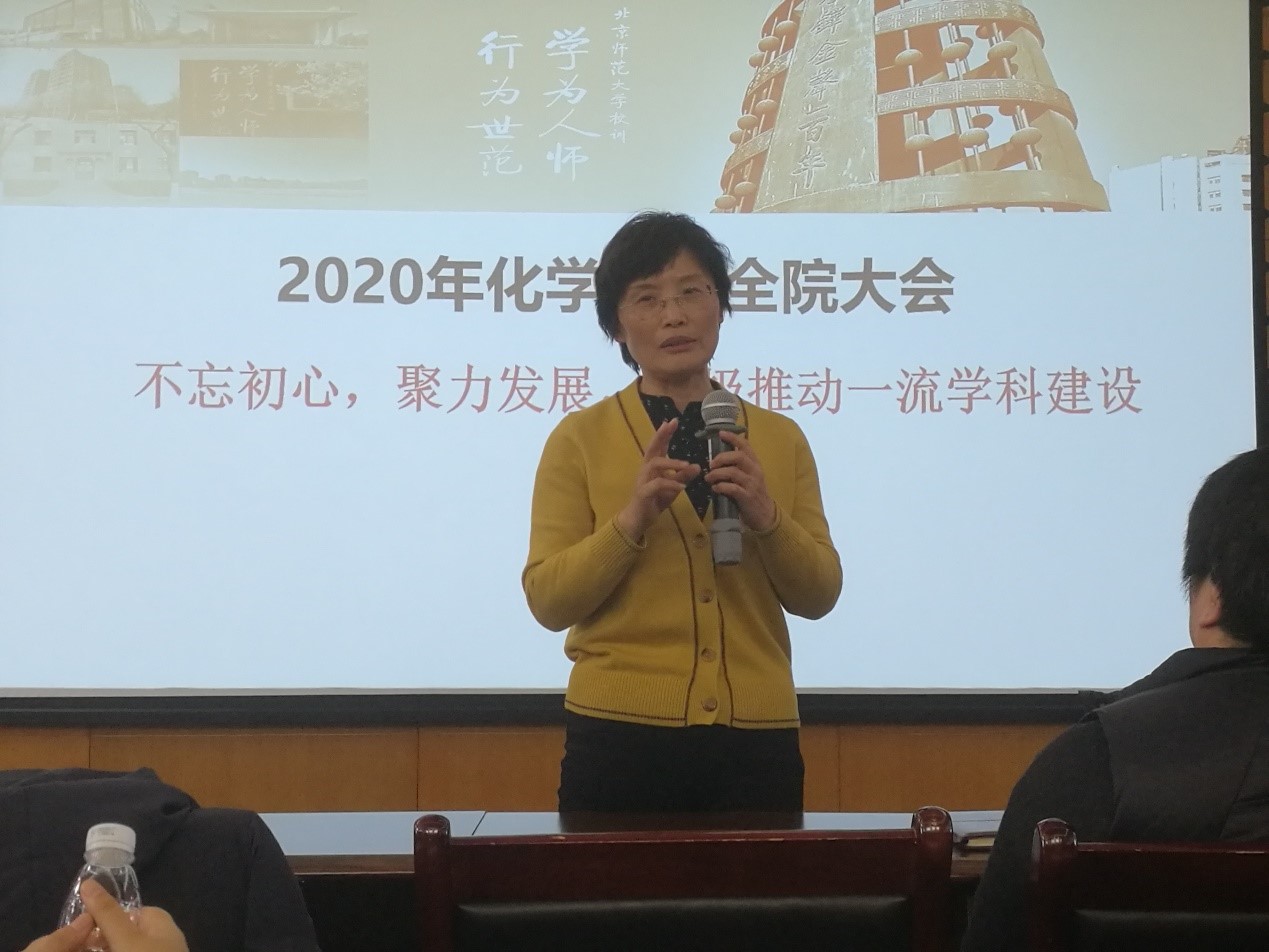 会议的第三阶段是学院党政领导班子述职。首先,范楼珍院长就学院整体工作做了报告,介绍了琉璃神社 过去一年在人才引进、教学、科研、产业化等方面取得的成绩,鼓励全院教师新的一年继续努力工作、砥砺前行。魏朔副院长从教学日常工作、本科人才培养、教学条件建设、师范生认证、本科招生宣传等方面总结了学院本科教学工作。杨清正副院长介绍了学院研究生培养和科研相关工作,2019年,学院理论与计算光化学教育部重点实验室、放射性药物化学教育部重点实验室,两个教育部重点实验室均顺利通过评估。张俊波副院长代表学院对学院的财务工作、筹资工作和行政工作等进行了总结。学院党委副书记韩娟老师就学生管理和思政教育工作进行了总结。最后党委书记卢忠林老师从学院党委的总体情况、学院党委的主要工作、有关问题和工作思路三个方面介绍了学院的党建工作,过去一年学院党委深入落实“不忘初心,牢记使命”主题教育,积极配合学校巡察工作,积极促进学科建设等;卢老师还就学院的安全工作进行了汇报,并对全院老师提出要求,确保上级单位和学院的安全制度和规定落到实处。