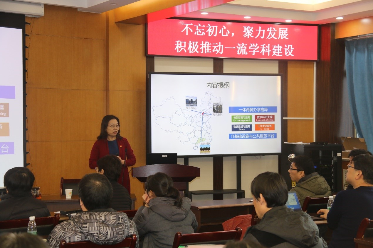 会议的第二阶段,信息网络中心别荣芳老师向全院教师作了主题为“新时代的学校信息化建设”的报告,科技处林小娟老师向全院教师作了“国家自然科学基金项目资助概况与申报注意事项”的介绍,两个报告对老师们在信息资源和电子工具使用、国家自然科学基金申报等方面具有很好的指导意义,将对老师的科研教学工作等产生积极影响。