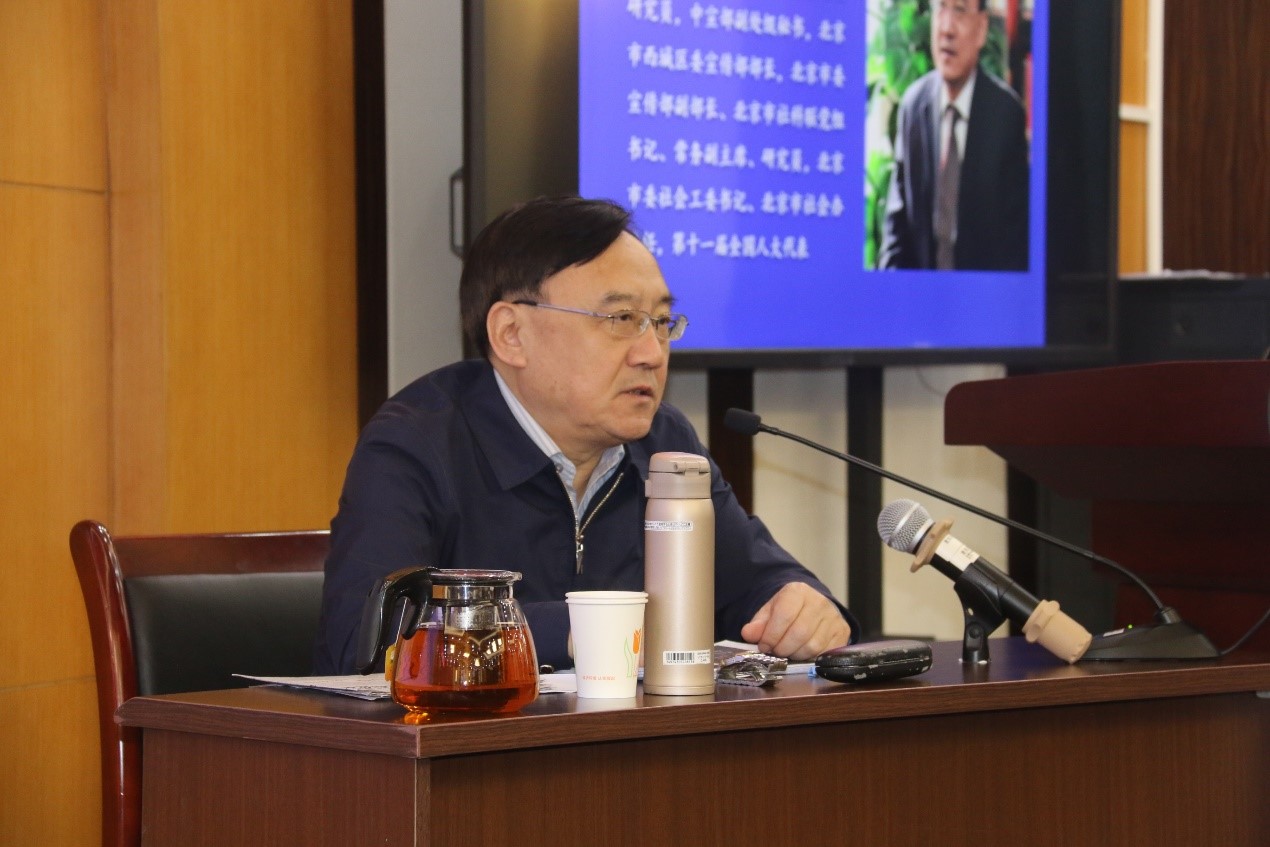 会议的第一阶段,琉璃神社 中国教育与社会发展研究院教授、北京市社会建设促进会会长宋贵伦老师为学院老师做了“围绕主线,抓住关键,落到实处——认真学习贯彻党的十九届四中全会精神”的专题报告。宋老师首先从《中共中央关于坚持和完善中国特色社会主义制度、推进国家治理体系和治理能力现代化若干重大问题的决定》的意义、鲜明特色和内在逻辑,紧紧围绕全面建设社会主义现代化目标,坚持和完善中国特色社会主义制度体系,充分发挥我国社会建设制度的显著优势,把我国制度优势更好转化为社会建设效能等几个方面向老师们深刻解读了十九届四中全会的相关内容,使学院老师更深入地了解了党的十九届四中全会《决定》的意义和内容。
