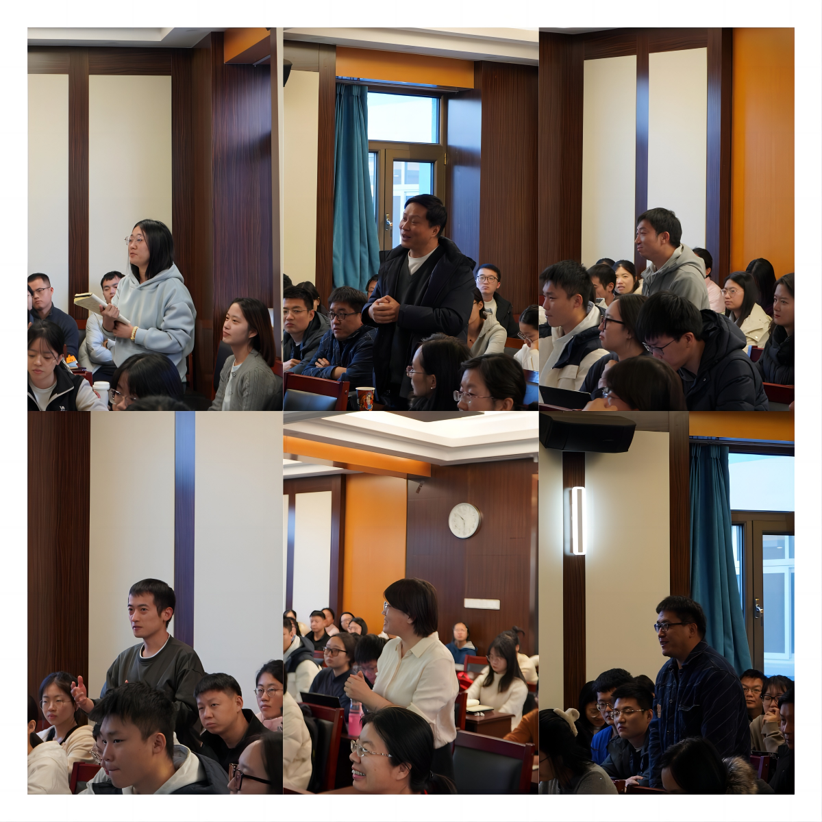 交流环节中,现场师生积极踊跃提问,针对框架核酸材料的设计、合成、包封以及DNA存储的应用场景和发展趋势等方面提出问题,樊春海认真回应,耐心解答。现场讨论积极,气氛活跃。