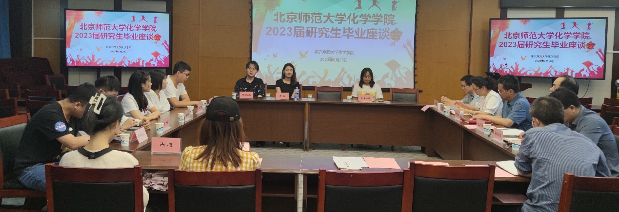 各位毕业生代表先后表达了对学校、学院老师用心培养的感激之情,回顾了自己的研究生生涯,分享了求学感受以及在校期间的成长和收获,介绍了自己的毕业去向,并围绕学院课程设置、仪器管理、实验环境、安全管理、职业生涯规划等多方面向学院提出中肯意见和优化建议。与会教师认真听取了每位同学的发言,对毕业生顺利完成学业表示祝贺,对同学们关心、支持学院发展表示感谢,并针对同学们提出的问题做了一一回应。