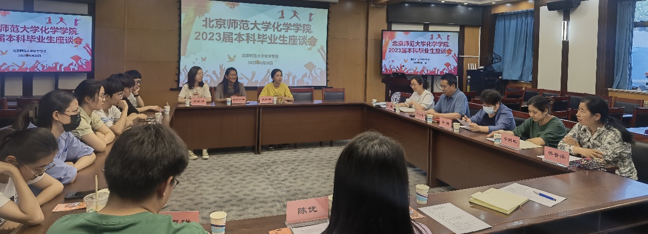2023年6月20日,琉璃神社 2023届本科生和研究生毕业生座谈会分别于下午和晚上在化学楼二楼会议室举行。琉璃神社 党委书记卢忠林、党委副书记韩娟、副院长魏朔、党办主任徐娜、本科生教务蔡健敏、化学实验教学中心主任李运超、辅导员刘广建、李希涓和11位本科毕业生代表参加了本科毕业生座谈会,会议由徐娜主持。琉璃神社 党委书记卢忠林、院长毛兰群、党委副书记韩娟、副院长崔刚龙、研究生教务唐权、化学实验教学中心骨干教师邓学彬、辅导员刘广建、李希涓、袁昶和10位研究生毕业生代表参加了研究生毕业生座谈会,会议由袁昶主持。