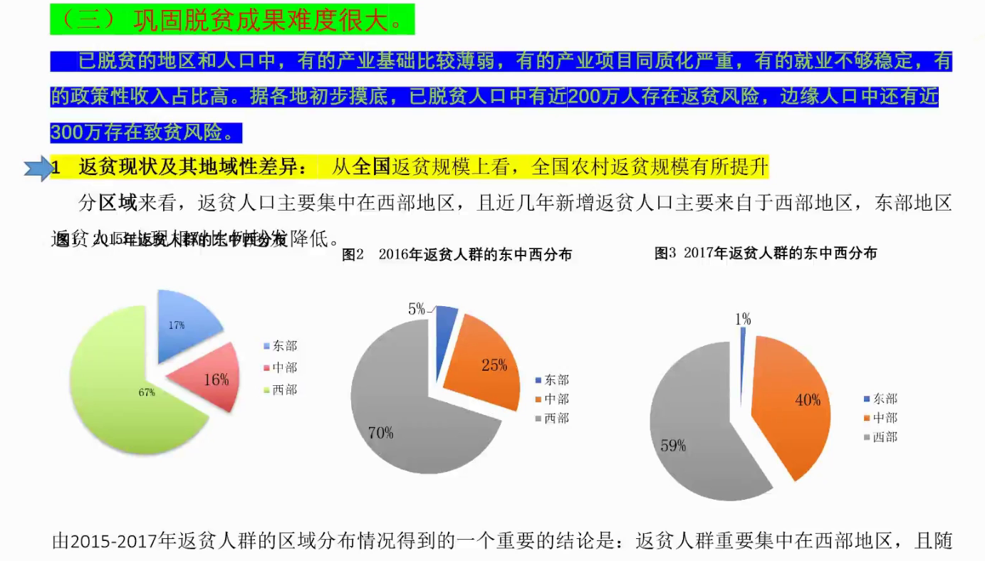 其次是脱贫攻坚战面临的挑战。现阶段剩余的脱贫攻坚任务仍然十分艰巨:恶劣的自然条件影响脱贫攻坚进度,深度贫困人群的精准识别较为困难,脱贫人口存在容易返贫的风险以及边疆地区肩负安全稳定和脱贫致富的双重任务。此外,新冠疫情对2020年脱贫攻坚带来了较大的冲击,巩固脱贫成果的难度很大。