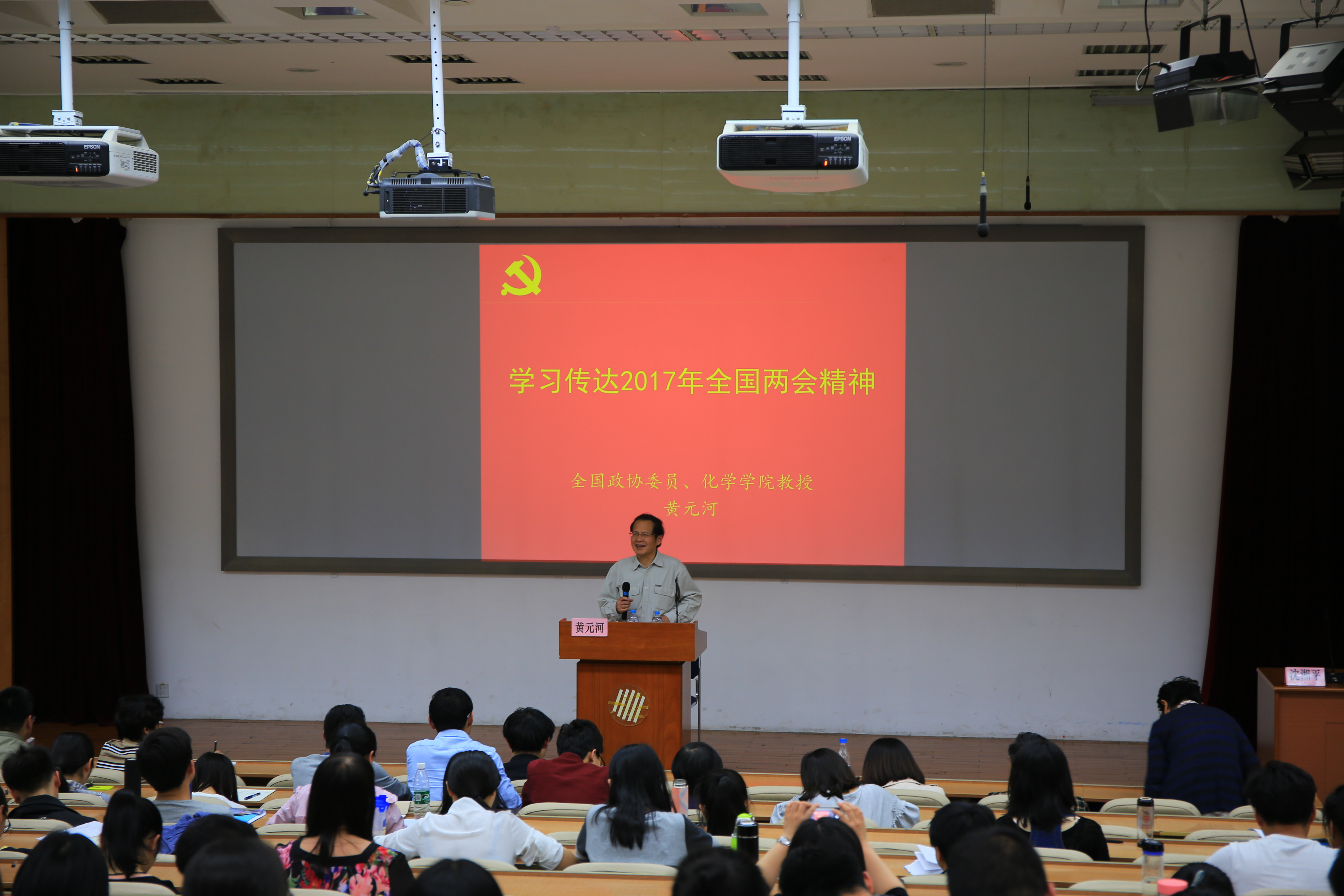 黄元河教授介绍了2017年全国两会的基本情况,就师生关心的两会热点问题进行了讲解,并分享了两会中有关教育问题的专题讨论。黄元河教授还对两会背后的故事和两会中的小细节进行了分享。