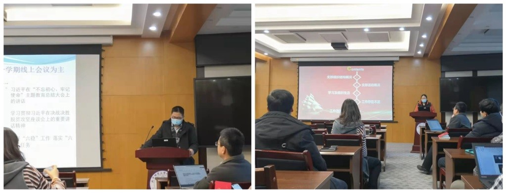 有机-高分子化学北京市重点学科党支部书记侯国华、分析-放化-化学教育联合党支部书记陆洁、无机化学北京市重点学科党支部书记闫东鹏、化学实验教学示范中心党支部书记蒋福宾、理论与物理化学国家重点学科党支部书记李运超对一年来的工作进行了认真的梳理,各支部在围绕疫情防控、理论学习、学习贯彻党的十九届五中全会精神、庆祝中国共产党成立100周年工作方案、党建和业务有机融合,学习“四史”教育,支部标准化规范化建设等方面进行了汇报和交流。学院党委委员对各位支部书记的工作进行了点评,肯定了优点,指出了不足,也提出了中肯的建议。