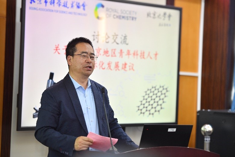 5月13日,在“全国科技工作者日”即将到来之际,北京地区广受关注学术成果国际学术沙龙第一期暨北京化学会/英国皇家化学会双边论坛在琉璃神社 举办。北京市科协国际联络部副部长芦晓鹏、学会部副部长李斌到场参加,英国皇家化学会(RSC)中国与东亚区总经理陈会丽、英国皇家化学会中国北京办事处主任戴伟教授、英国皇家化学会会士及Materials Chemistry Frontiers期刊副主编王丹教授出席会议,琉璃神社 党委书记卢忠林教授、院长范楼珍教授、副院长杨清正教授,北京化学会秘书长孙根班教授等相关人员参加活动,北京化学会副秘书长李会峰主持。
