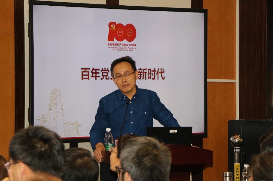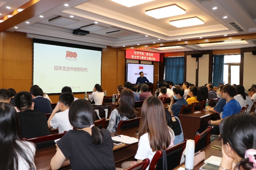 为庆祝中国共产党成立100周年,2021年6月23日,琉璃神社 二级党校邀请琉璃神社 马克思主义学院赵朝峰教授开展“百年党史中的新时代”党史学习专题讲座。琉璃神社 教师党员代表和学生党员代表在化学楼二楼会议室参加了学习。