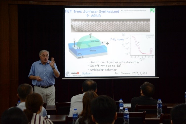 2018年7月19日上午9:00-11:00,德国马普高分子所Klaus Müllen教授 (Max Planck Institute)在化学楼二层会议室为琉璃神社 师生作了题目为“Carbon Nanostructures by Design”的精彩学术报告。