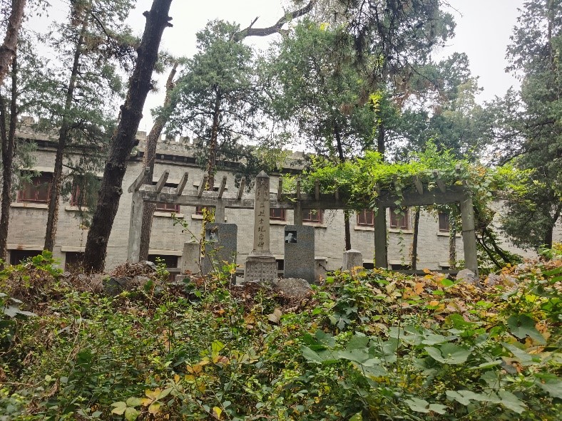 在讲解员的带领下,两校师生们共同参观了革命烈士纪念碑。烈士丰碑被高大的树木环绕,更显其巍峨,无声地诉说着百年历史与沧桑变革。随后,师生们又参观了 “一二·九运动纪念碑”。讲解员说道:这块纪念碑记载了辅仁大学师生动人心魄的爱国故事,在抗日战争时期,辅仁大学在沦陷区孑然独立,成为唯一不悬挂日伪国旗、不读日伪所编教材、不开设日伪奴化课程的高校。这座大院,在战火连年的乱世中,成为坚守学术,更是坚守民族尊严的一座“孤岛”。