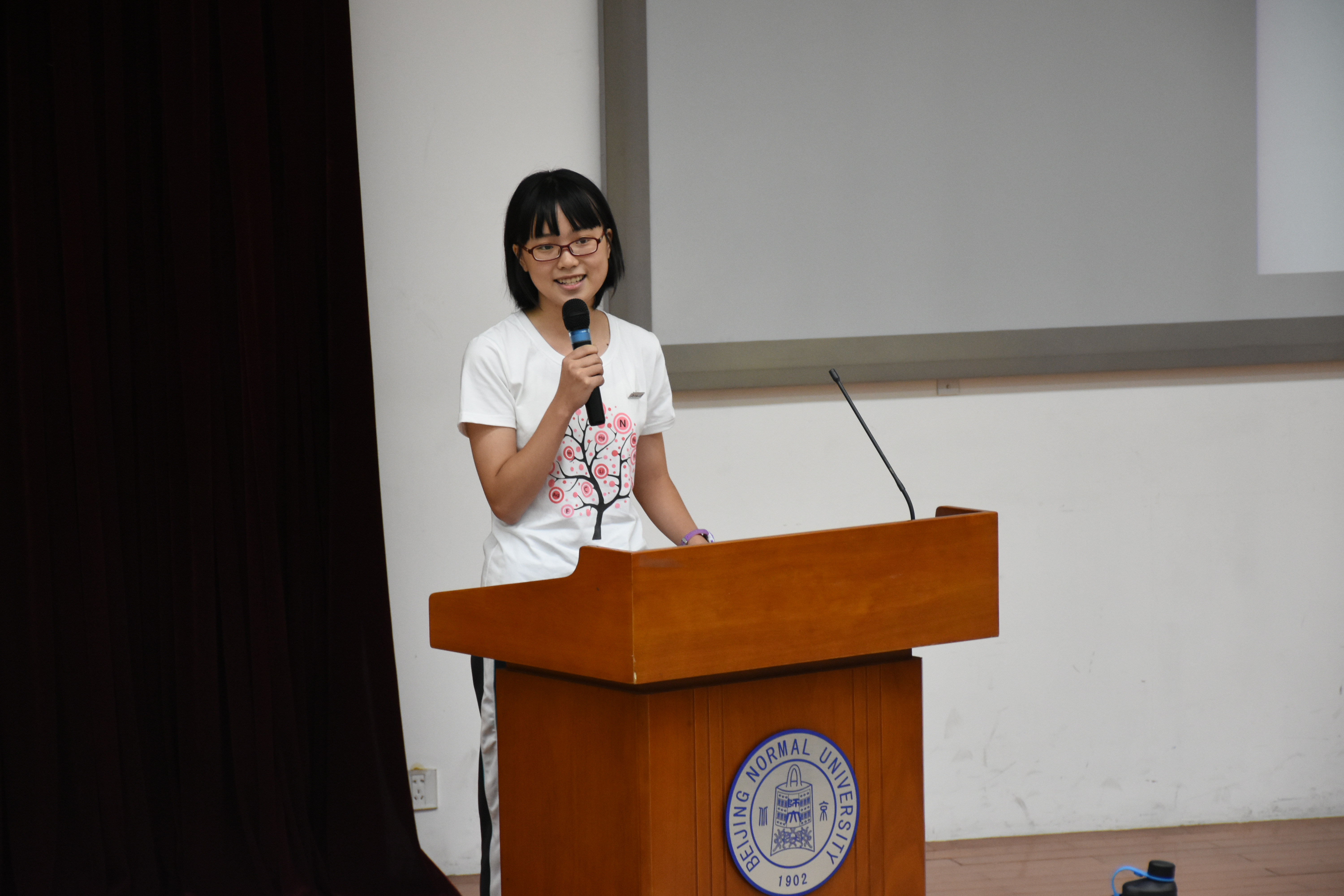 2017级本科生唐珑畅同学代表新生发言。她表达了自己对于迈入北师化院的欣喜和对于未来学习生活的向往,并表示将以优秀学长为榜样,要做有科学素养、有独立思维和过硬本领的北师大化学人。