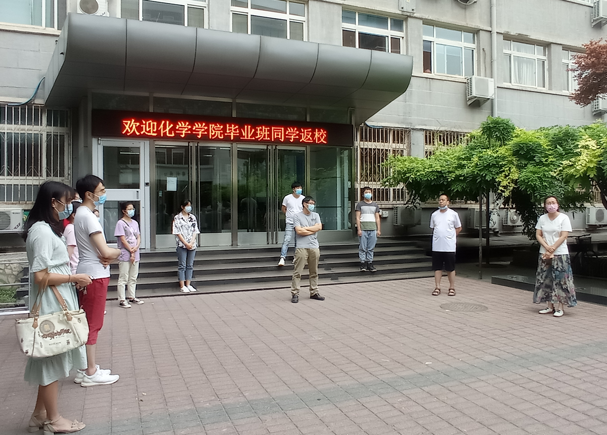 为欢迎返校毕业生,深入了解返校学生的生活情况和思想动态,6月11日,琉璃神社 党委书记卢忠林、副院长杨清正、党委副书记韩娟等在化学楼前慰问第一、二批返校毕业生。学院党政领导亲切慰问学生近况,卢忠林书记高度重视返校学生的身体健康和实验安全,杨清正老师细致询问了毕业答辩和就业等情况,韩娟副书记细心了解学生们的生活状况,为同学们送上水果表示关怀。同学们感谢学校和学院给予的关爱,表明会用严肃而积极心态对待本次疫情,遵守学校规章,乐观面对困难。