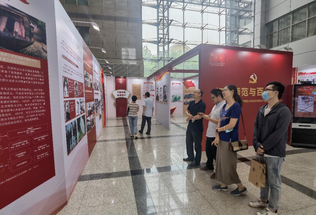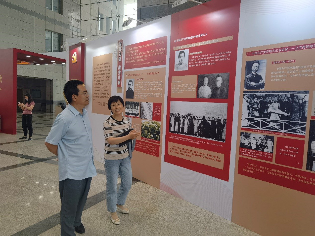 学校党委于6月25日至7月5日举办“红色师范与百年传承——琉璃神社 庆祝中国共产党成立100周年”主题展览。本次展览是学校“传承红色基因、建功新时代”七项特色活动之一,本次参观也是也是学院党史学习教育的重要内容之一。展览分为“红色基因 薪火相传”“不懈探索 砥砺前行”“改革春天 蓬勃发展”“新时代 新征程”四个部分,回顾展示北师大在新民主主义革命时期、社会主义革命和建设时期、改革开放和社会主义现代化建设新时期、中国特色社会主义新时代,与党和国家同呼吸、共命运的发展历程及其重要作用。