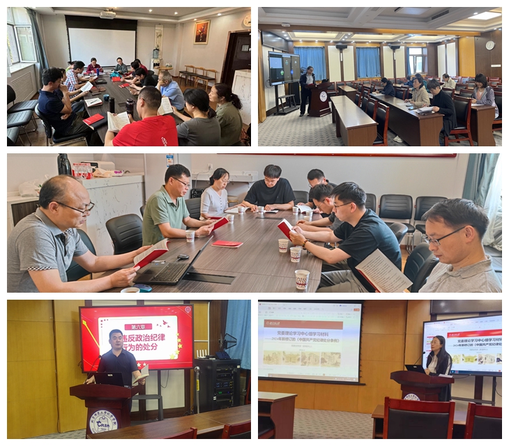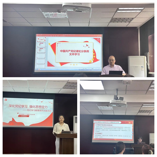 5月,各支部理论学习聚焦习近平总书记关于加强党的纪律建设的重要论述和《条例》,各支部书记带头讲党课,支部党员师生逐章逐条、逐字逐句地学习,并结合案例及自身学习情况、日常工作中遇到的问题疑惑,展开了讨论交流,真正做到学深悟透、入脑入心,使学习党纪的过程成为增强纪律意识、提高党性修养的过程。