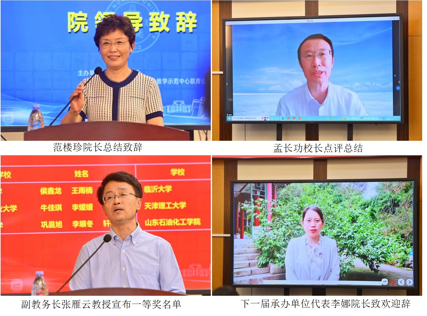 闭幕式在7月17日下午举行,监审专家代表大连大学校长、教育部高等学校化学类专业教学指导委员会副主任孟长功教授和竞赛评审专家复旦大学孙兴文教授对本次竞赛进行精彩点评与总结。琉璃神社 院长范楼珍教授在闭幕式上做了总结致辞,组委会委员李运超教授做了竞赛工作总结。随后在大家的热切期盼中,由琉璃神社 副教务长张雁云教授、范楼珍院长、魏朔副院长分别宣读了一等奖、二等奖、三等奖获奖名单:共评出一等奖36支队伍,二等奖65支队伍,三等奖77支队伍,并根据竞赛规则遴选出21支优秀的参赛队伍晋级全国总决赛。最后,山东师范大学化学化工与材料科学学院院长李娜教授代表下一届承办方发表了欢迎词。在依依不舍之中,此次竞赛顺利圆满落下帷幕!本次比赛为华北各高校众多在校大学生搭建了一个化学实验创新能力的展示与交流平台;参赛师生通过广泛的交流、学习、碰撞,激发了创新精神、开拓了创新思维;可以预见化学实验创新设计大赛的持续举办和作品的推广普及,必将对推动我国高等学校实践教学改革和培养高素质创新人才发挥积极作用。