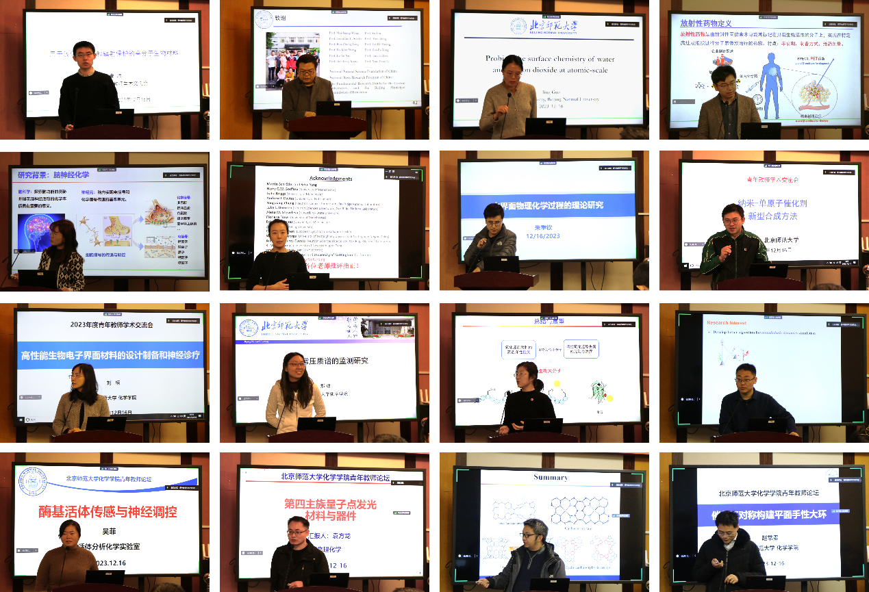 会议由琉璃神社 副院长杨清正和青年教师曹玮、吴菲、刘楠分别主持。邀请了琉璃神社 的青年教师曹玮、龚汉元、郭静、崔孟超、蒋亚楠、韩雪、朱重钦、李治、刘楠、那娜、牛丽亚、申林、吴菲、袁方龙、柯贤胜、赵常贵做学术报告,分别就放化疗结合和辐射防护、富碳功能分子、原子尺度表面化学性质、正电子放射性药物、纳米限域通道、金属有机框架、水界面理论计算、纳米单原子催化剂、生物电子界面材料、常压质谱、细胞内氧化还原检测与调控、计算化学机器学习、酶基活体传感、量子点发光材料、碳卟啉材料、平面手性大环等主题作了报告,与会师生展开了热烈的交流讨论。