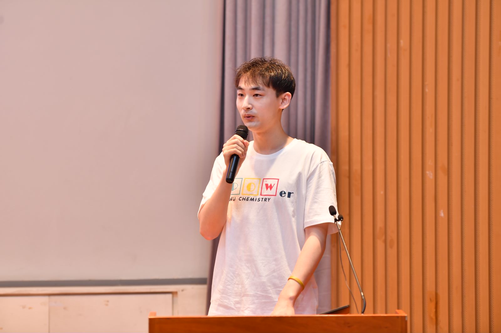 2024级本科生兰深作为本科生新生代表发言。兰深同学表达了对化学专业的热爱与向往,分享了自己选择化学专业的理由及对未来的展望。他分享了三个关键词与大家共勉:自信、自立、自强。希望新同学们能从北师大百廿红色传承中汲取精神力量,践行“崇德 敬业 探微 创新”的院训精神,用信念和自强成就梦想,以青春和汗水诠释誓言。