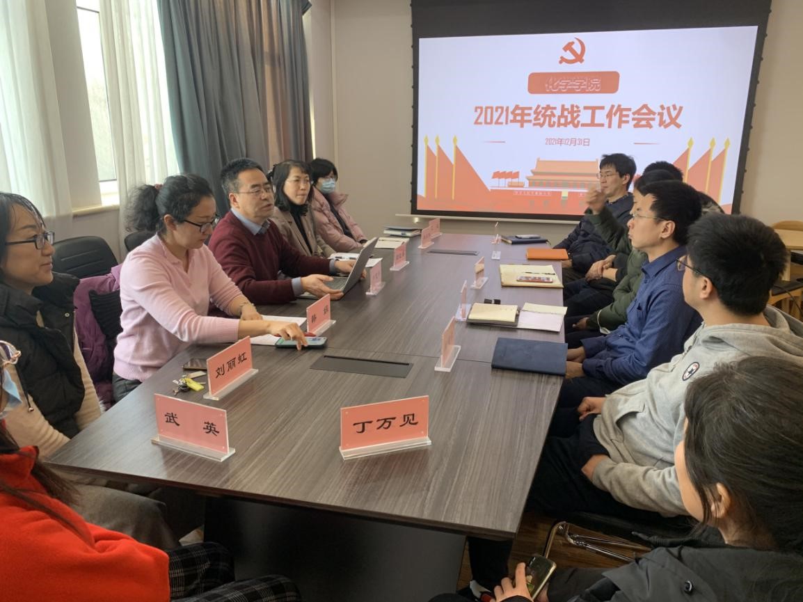 为深入学习贯彻十九届六中全会精神,更好落实《中国共产党统一战线工作条例》,广泛凝聚共识,琉璃神社 与12月31日召开了2021年统战工作会议。校党委统战部副部长邵红英,琉璃神社 党委书记卢忠林,副书记韩娟和学院民主党派人士及其他党外人士代表参加了座谈会。