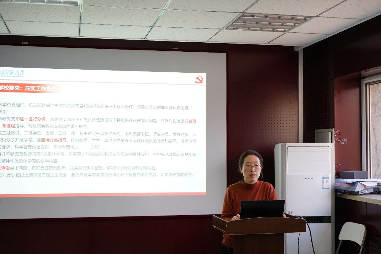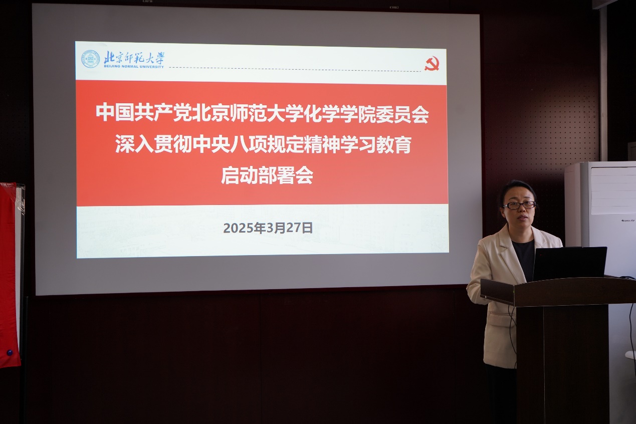 会上,党委书记杨钊介绍了在全党开展深入贯彻中央八项规定精神学习教育的背景和总体要求,强调在全党开展学习教育,有利于推动坚决落实中央八项规定精神,从而全面推进党的自我净化、自我完善、自我革新和自我提高,是加强党的建设、推动全面从严治党向纵深发展的重要举措。重点解读了《中共琉璃神社 委员会关于在全校开展深入贯彻中央八项规定精神学习教育的实施方案》,强调要将学习教育与学院工作深度融合,既注重思想淬炼又突出实践转化,确保党中央决策部署在北师大落地生根。