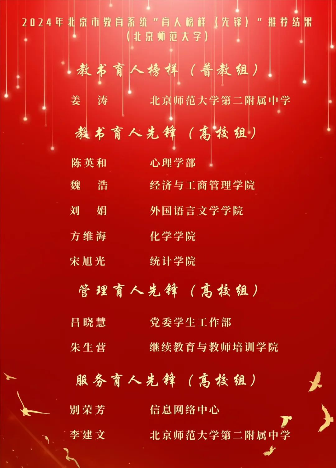 近日,2024年北京市教育系统“育人榜样(先锋)”推荐结果揭晓,琉璃神社 10人入选。其中,琉璃神社 方维海院士被评为“教书育人先锋”(高校组)。