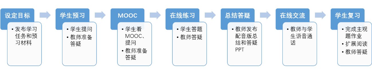 每节课的最后10分钟,教师与已分好组的8名学生进行语音通话交流,详询他们的学习情况等。最后教师布置主观题作业,要求学生按时拍照提交,由教师与助教批改。每章结束后,教师还会提供补充阅读材料以供学生扩展学习。
