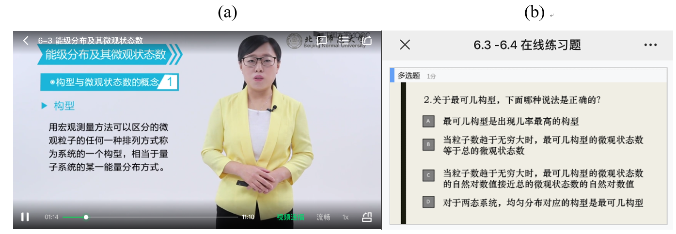 图3 MOOC平台教学视频(a);长江雨课堂在线练习题(b)