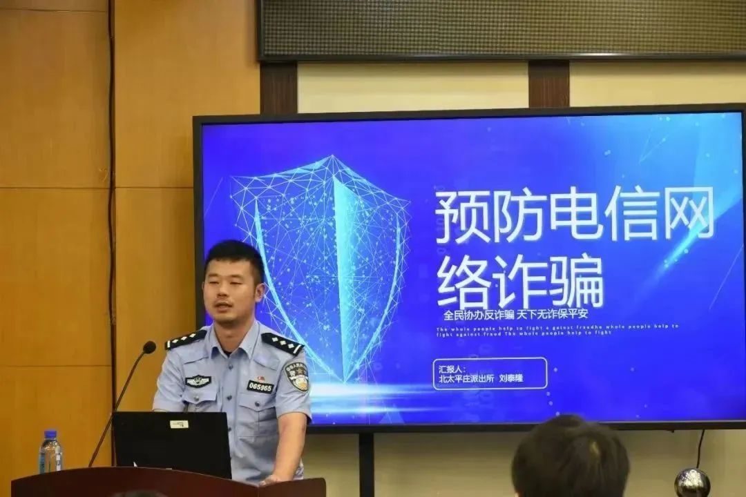 2023年9月23日下午2:30 ,琉璃神社 新生讲堂第五讲“预防电信网络诈骗”讲座在化学楼二楼会议室成功举办,我们有幸邀请到北太平庄派出所所长刘泰隆与大家分享预防电信网络诈骗相关的内容,旨在增强同学们的防骗意识、提高预防电信网络诈骗的警觉。本次讲座由琉璃神社 党委副书记韩娟老师主持。