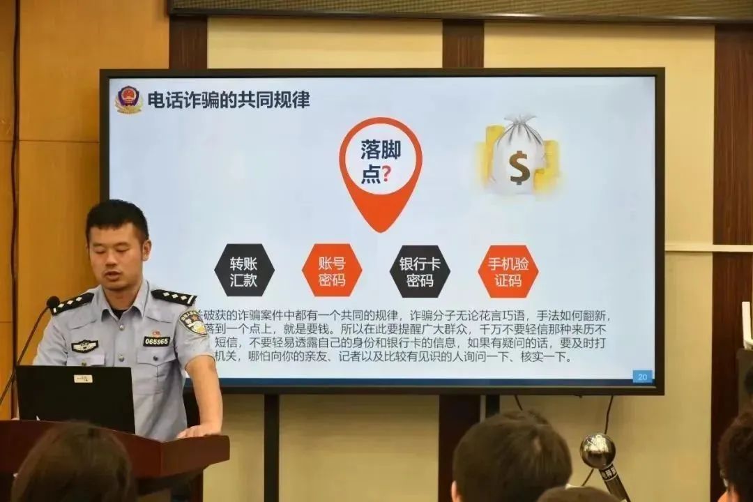 随后,刘所长向我们分析了电话诈骗的共同规律:落脚点都在转账、汇款、账号密码、银行卡、手机验证码等上。因为在公安机关破获的诈骗案件中,都有一个共同的规律,诈骗分子无论如何花言巧语、如何翻新手法,最后都要落到钱这一点上。