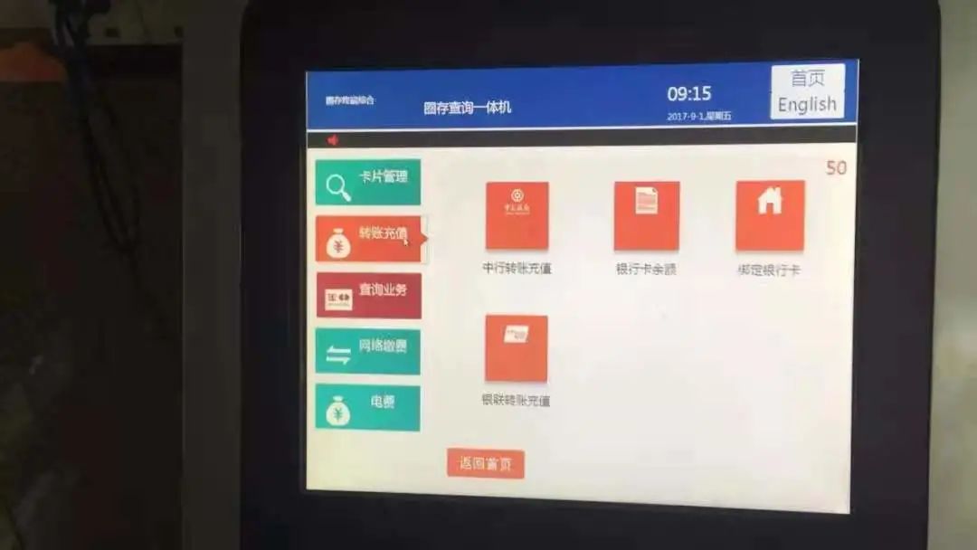 2、通过与校园卡绑定的中国银行借记卡,在校内的圈存机上进行充值。