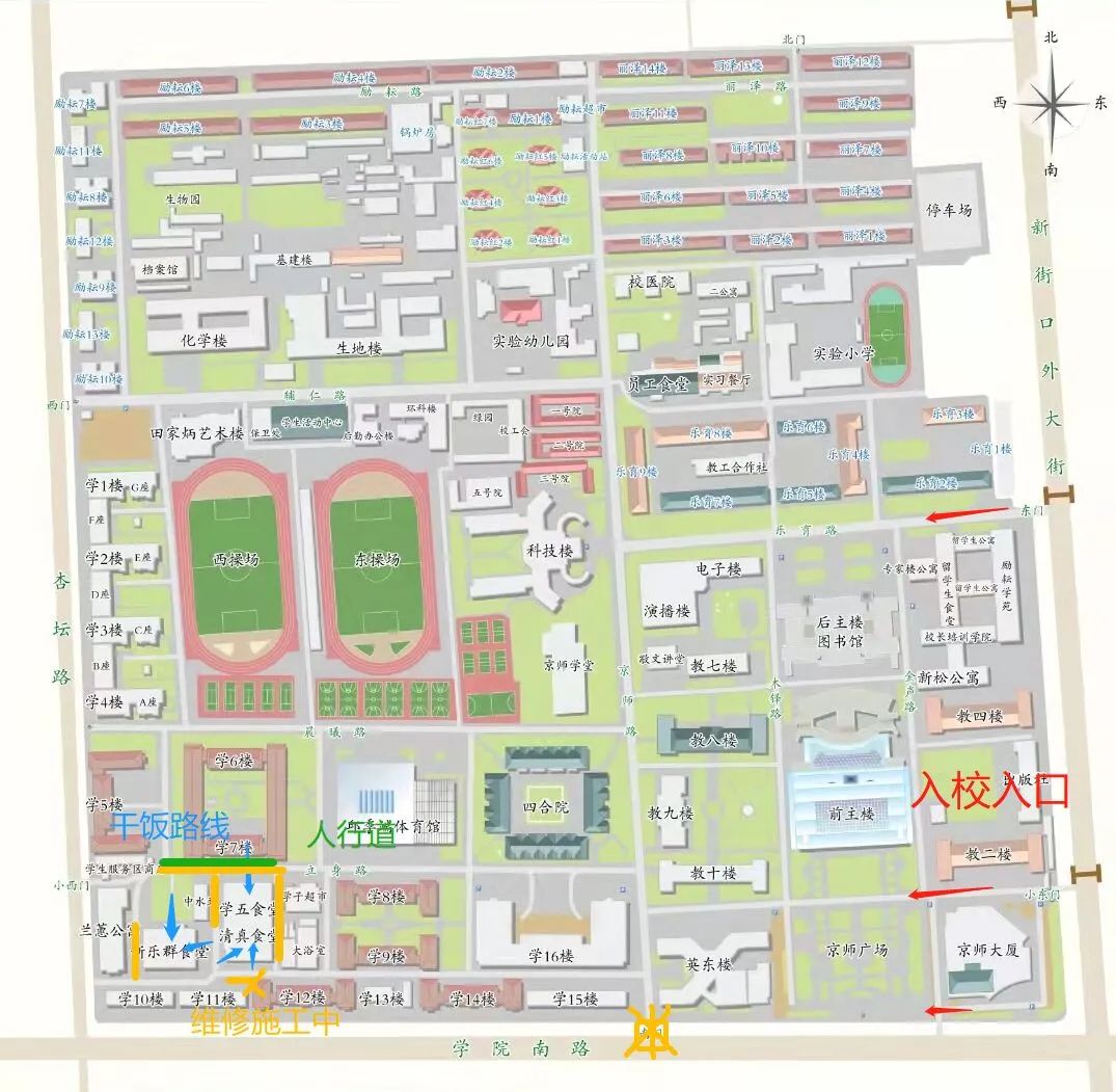 报到=大南门→京师广场琉璃神社 摊位→宿舍→圈存机/校园卡→班会