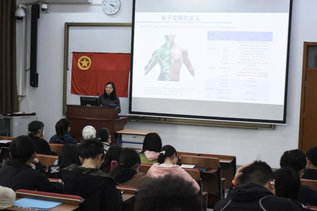 时光轻浅,岁月如歌,唯有芳华,沉香流年。春之美,在于复苏与勃发;教之美,在于钻研与提升。承载着冬的积蓄,沐浴着春的暖阳,2023年3月25日下午16:00琉璃神社 初级团校第二讲在生命科学学院第二教室隆重召开。首先主持人王彤竹介绍了莅临本次讲座的琉璃神社 教授刘楠老师和琉璃神社 团委书记徐娜老师,并表示热烈欢迎。随后,刘楠教授温婉亲切地为同学们带来了以高性能电子皮肤的科研为题的讲座,把高端前沿的学术娓娓道来,不仅循循善诱地引领大家脚踏实地做研究,使我们更好地了解了北师大化学学科的历史与如今化学学科的研究前沿,更是为我们指出成长路径,让我们有了可仰望的星空。