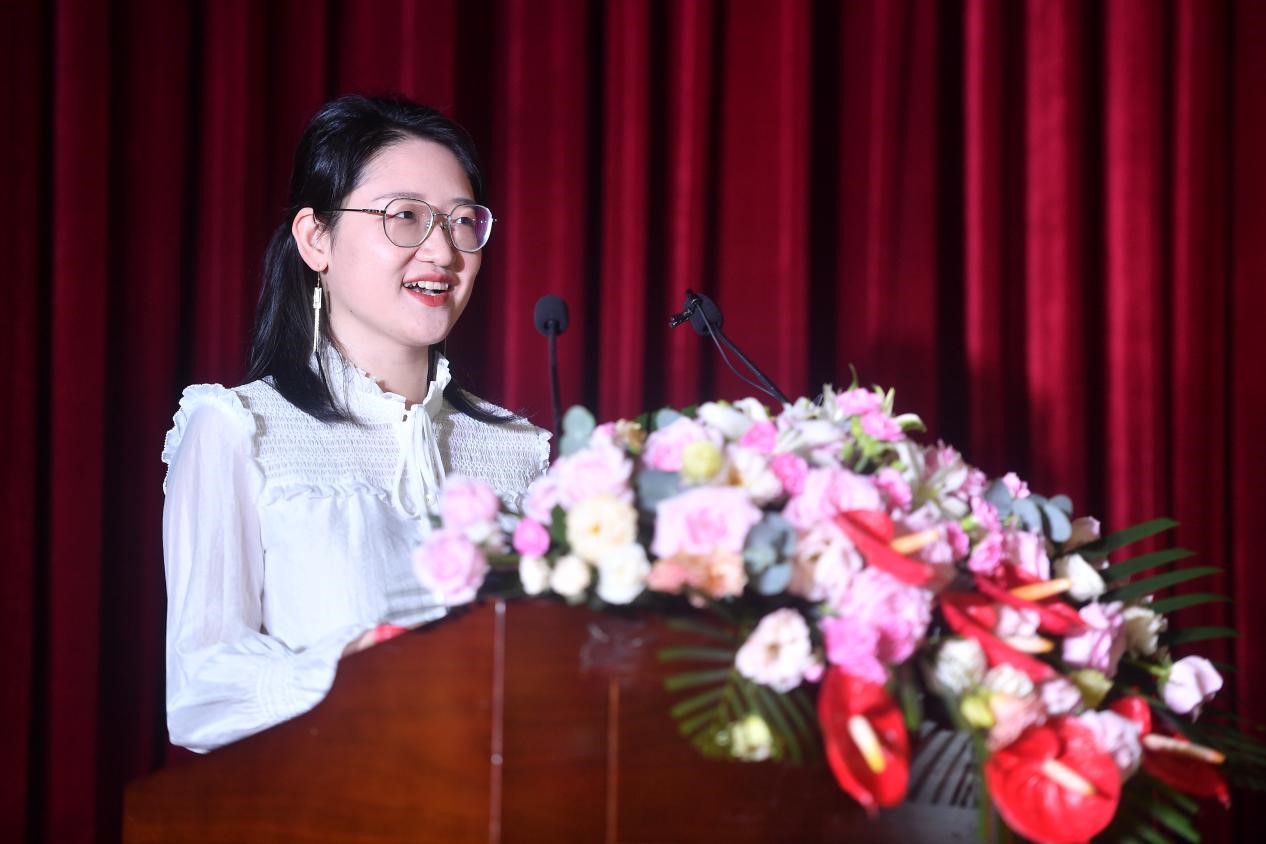 2021级本科生吴佳娆作为新生代表表达了来到北师大学习的喜悦之情,并与大家分享了几点建议:做好规划、明确目标;脚踏实地,自强不息;全面发展,广泛涉猎。