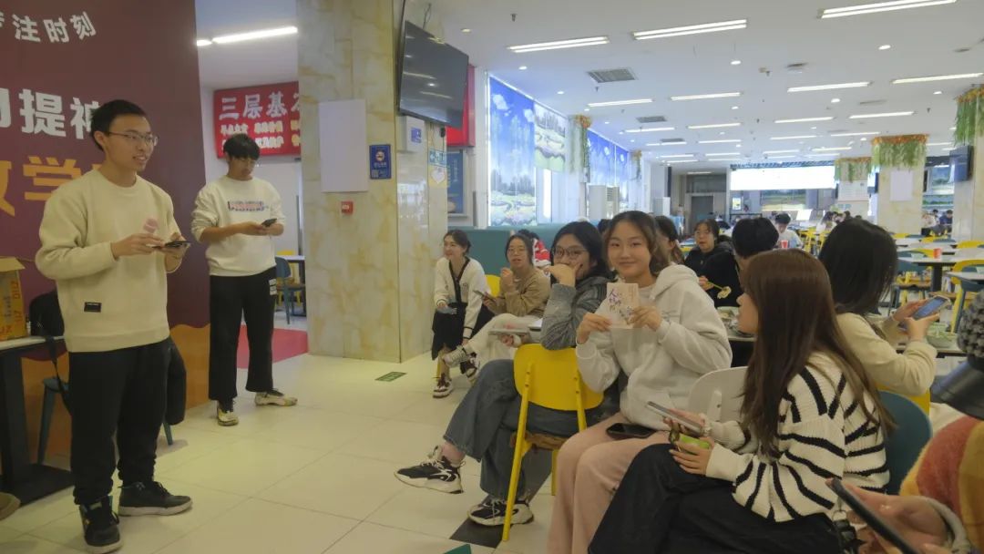 在游戏环节,同学们积极参与了冬至知识问答、含“冬”“雪”的诗句主题飞花令和听歌识曲活动。游戏过后,同学们进行了文艺表演,师兄师姐分享了期末周备考经验,并由曹玮老师为同学们送上了期末祝福。