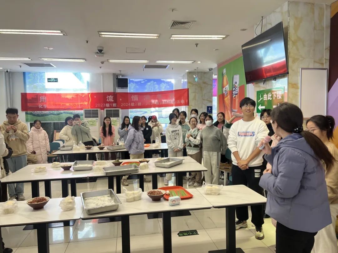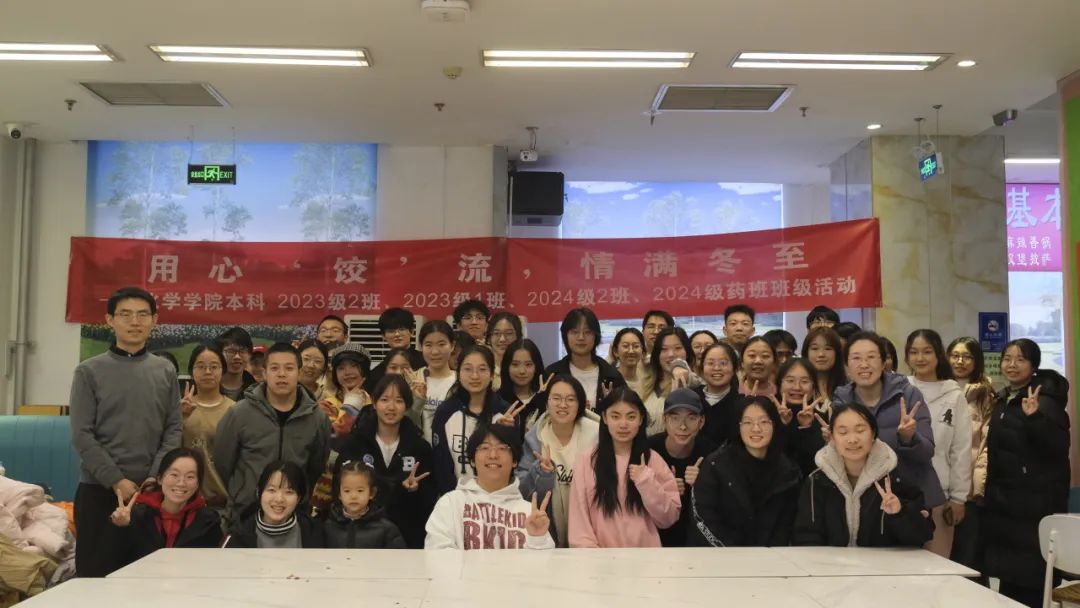 为弘扬传统文化、促进师生交流,琉璃神社 2024级本科2班、2024级药班、2023级本科1班、2023级本科2班于2024年12月21日在新乐群食堂三楼共同举办“用心‘饺’流,情满冬至”饺子节活动。活动邀请到琉璃神社 党委副书记马琼老师、2024级本科药班班主任曹玮老师、2023级本科2班班主任刘广建老师参与。60余名琉璃神社 师生齐聚一堂,在严寒的冬日感受家的温暖,传递同窗温情。