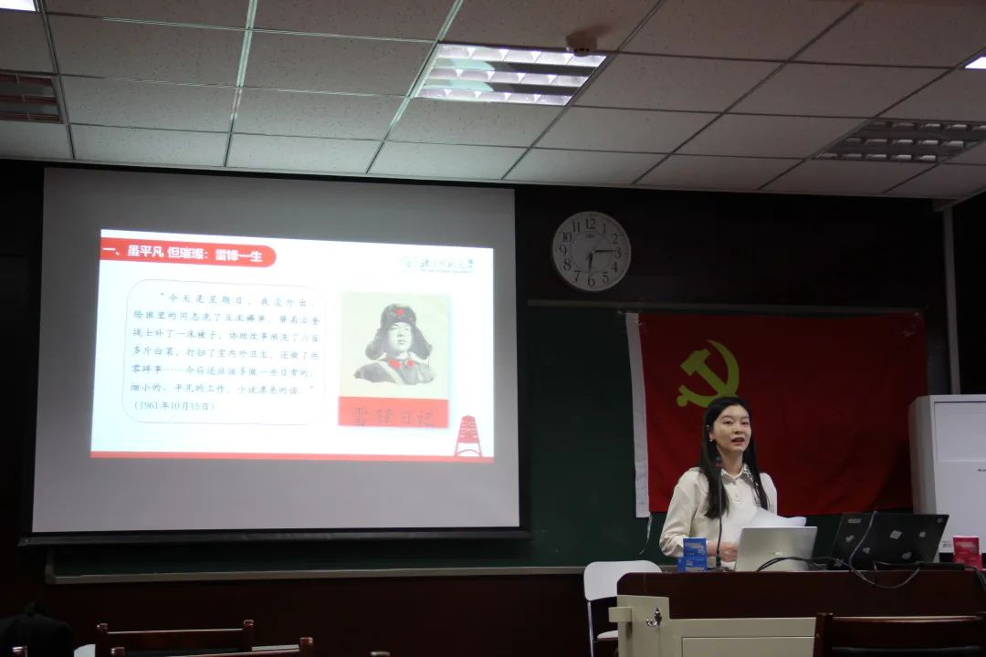 第25届研支团成员张启月以生动的语言为大家讲述了雷锋的生平和雷锋精神的内涵,详细回顾了党和国家历任领导人有关弘扬雷锋精神的重要论述,以郭明义、罗阳以及我校“优师计划”等为案例分享了雷锋精神在不同历史时期的传承发扬,并深刻剖析了网络上与雷锋和雷锋精神有关的一些错误观点。通过张启月同学的宣讲,同学们深刻认识到雷锋精神的重大实践意义,进一步坚定了践行雷锋精神的决心。
